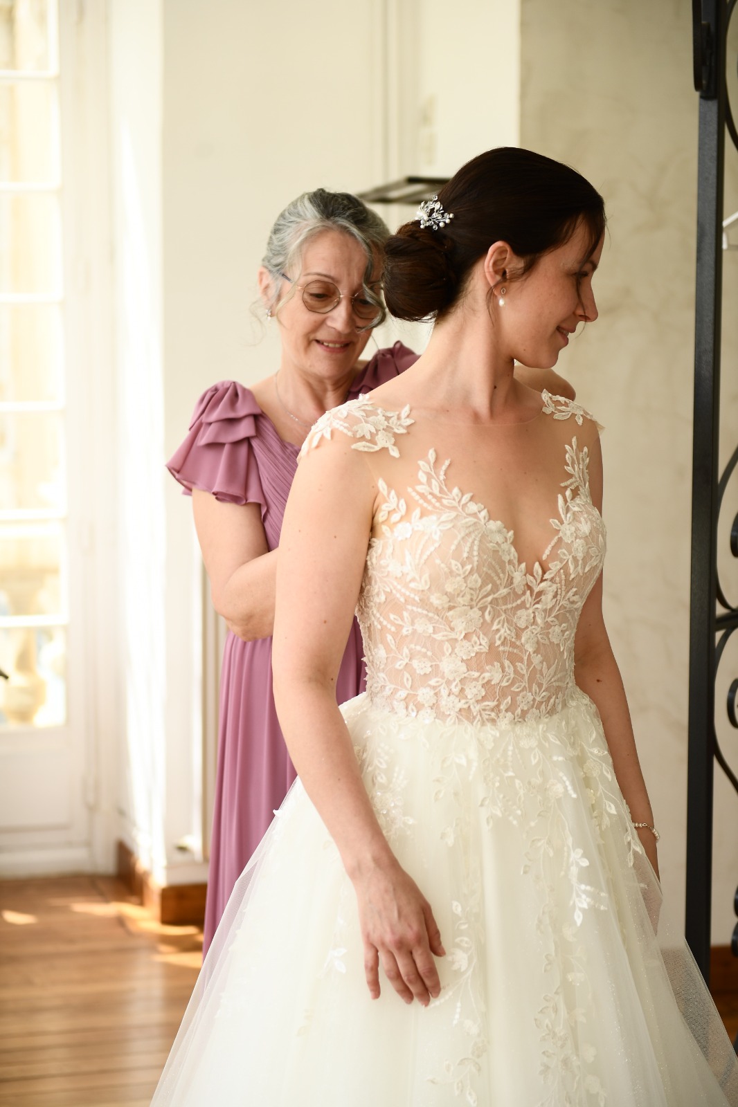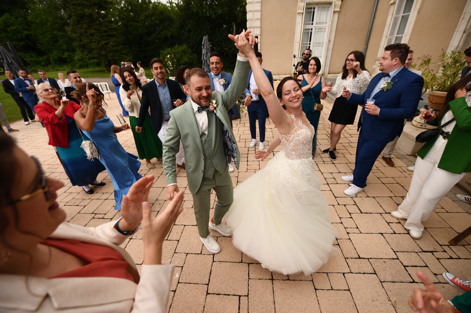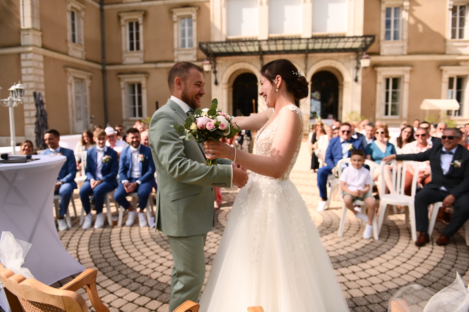 Nous gardons le souvenir d’une journée passée à grande vitesse, un véritable rêve éveillé de voir tout ce qu’on avait prévu, se dérouler parfaitement. Nous sommes tout de même désolé pour les quelques gouttes de pluie qui ont gâché les 2 dernières minutes du vin d’honneur ..
